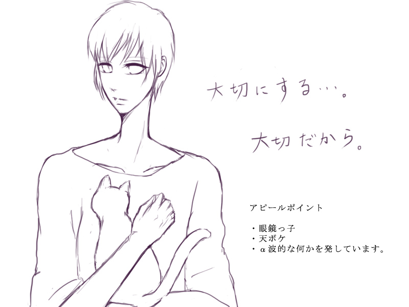 そして恒例の自己アピール企画。今日はリン君がアピールをしてくれました。アピールポイントに眼鏡って・・・作者みたいな眼鏡フェチにしかアピールできないじゃないですかっ、と突っ込んだあなた・・・。うん、それを見越して眼鏡なしバージョンなんてものもあります。眼鏡なしバージョンを見たい方は記事の続きで見れますです。はい。リン君は妙なオーラなんて反則技があるので、あんまりアピールとか必要ないかもですね。白樺荘で一番の癒し系はこの子じゃないかなぁと思います。あ、あとはじゅんちゃんか。