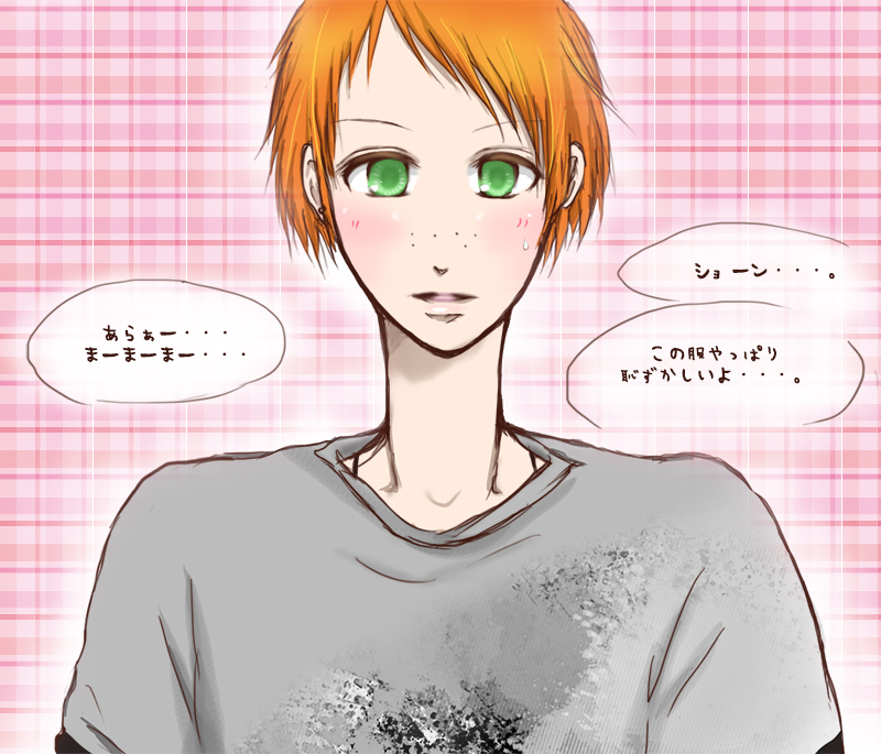 みなさん、こんにちは☆突然また拍手絵が変わりました。今度はギャグで描いたつもりが、どう見ても変態嗜好にしか見えない絵です。今日(も)変態兄さんの生贄になるのはこの人です。兄さんと今日もラブラブちゅーしたかった人はすいません。全てはショーン君が悪いのです。みんなでショーンなんか嫌い、大嫌いと言ってやりましょう。そしてそんなツンデレなあなたにショーン君がぞっこんになることは間違いありません。