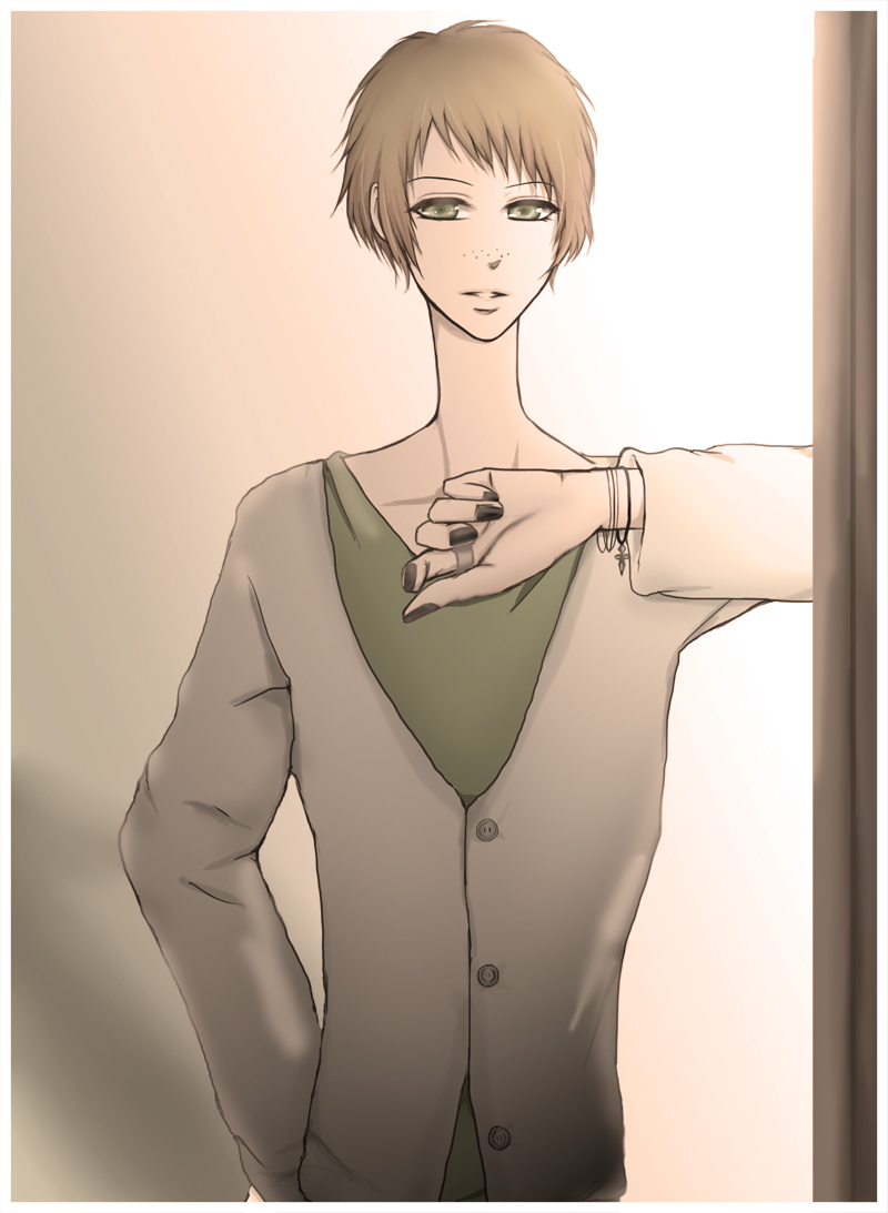 そして今日の兄さんアルバムはショーン君です。これ、カラー版だと全然雰囲気が違います。なのでカラー版もアップしておきますね。見たい方はこの記事の続きでどうぞご覧になってください。この企画もあとはジョシュとフェリ君のみですね。で、ここまで描いてみてちょっと思いました・・・。兄さんアルバムが二連続で、兄さんを全然描いていない気がする。ま、その為に拍手絵兄さんにしたわけなのですが、兄さんがこうも出てこないとなんかさびしいですね。(え、うざい人はいなくていいって?)兄さんのこんなシチュエーションが見てみたいっていうリクがあったらどうぞ作者に言ってみてね。