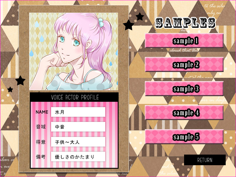 この度リリースするのは「ボイスコ図鑑」というゲームの体験版で、企画やツイッターでお世話になっている方たちをお招きして、とにかくいろんなお声を堪能するゲームです。ボイスコさんが台詞を自作してくださり、あんな台詞、こんな台詞も聴けてしまうという、なんとも贅沢なゲームでございます。
