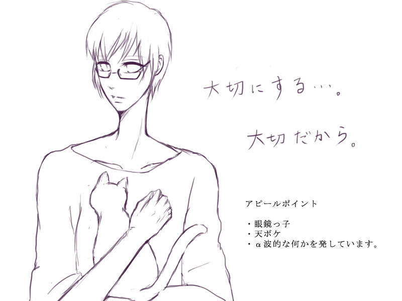 そして恒例の自己アピール企画。今日はリン君がアピールをしてくれました。アピールポイントに眼鏡って・・・作者みたいな眼鏡フェチにしかアピールできないじゃないですかっ、と突っ込んだあなた・・・。うん、それを見越して眼鏡なしバージョンなんてものもあります。眼鏡なしバージョンを見たい方は記事の続きで見れますです。はい。リン君は妙なオーラなんて反則技があるので、あんまりアピールとか必要ないかもですね。白樺荘で一番の癒し系はこの子じゃないかなぁと思います。あ、あとはじゅんちゃんか。
