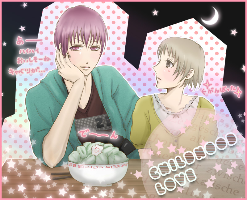リクエストがあったので描いてみました。お兄とほのかです。キャベツの下の麺にたどり着くまでに麺が延びてしまいそうです。「がんばれお兄。負けるなお兄。」とみんなでお兄を励ましてやりましょう。